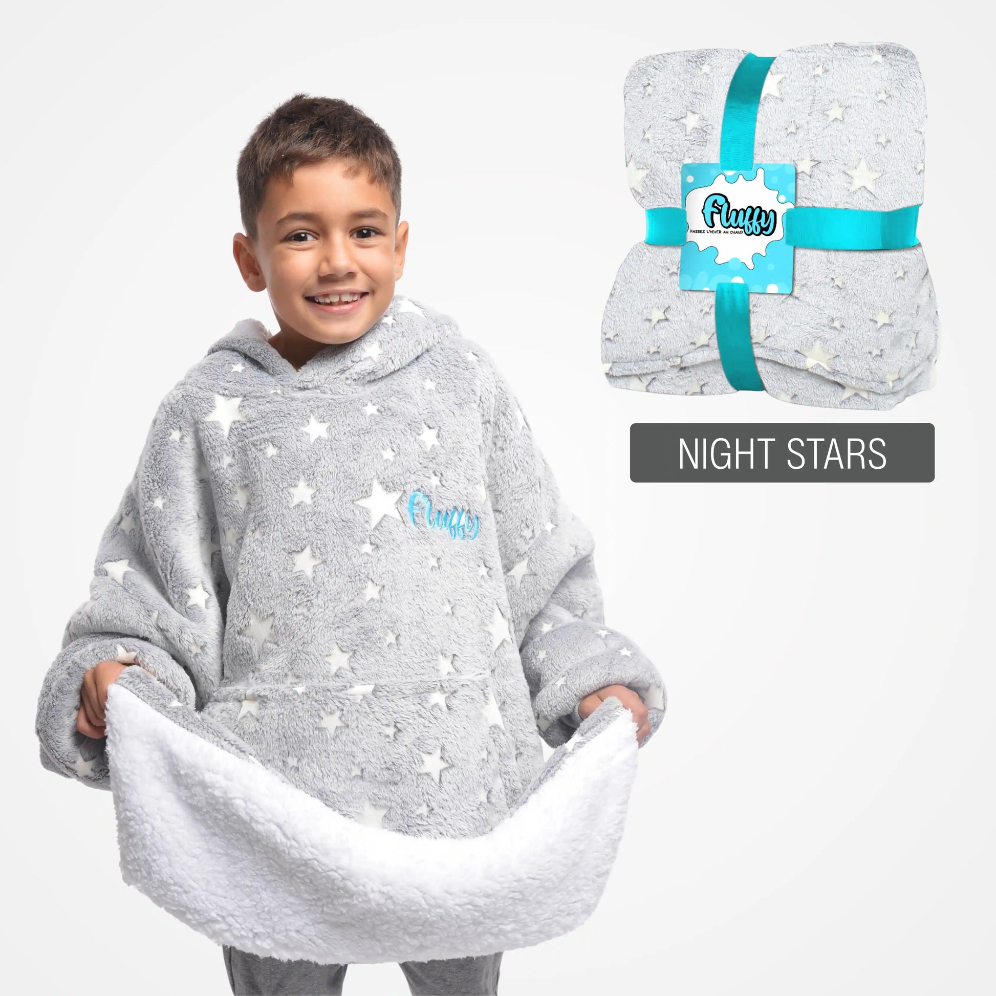 Fluffy simplifie la vie : une taille unique qui va à tous, adultes comme enfants. Contrairement aux vêtements classiques, zéro prise de tête.